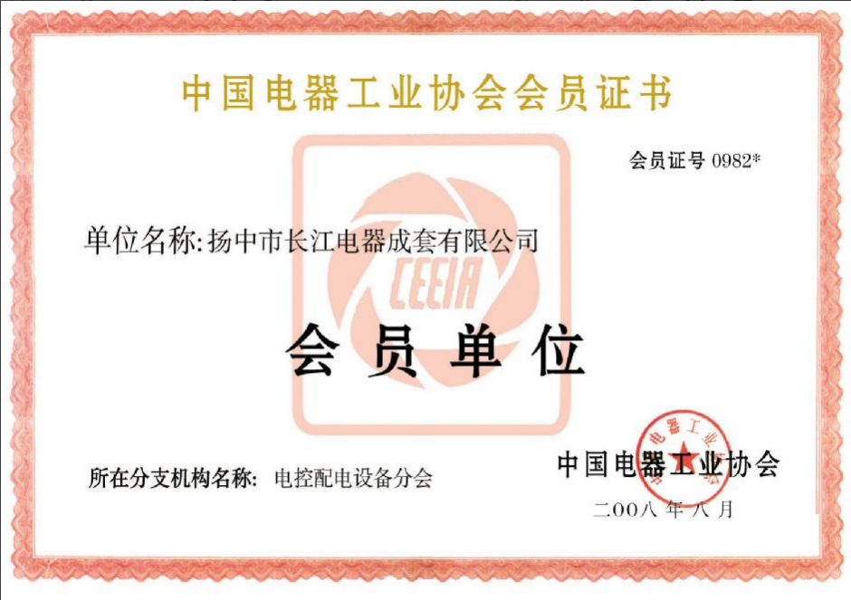 中國電器(qi)工業(ye)協會(hui)會(hui)員證書