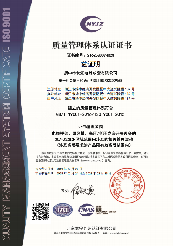 質量(liang)管理體(ti)系(xi)認證(zheng)證(zheng)書
